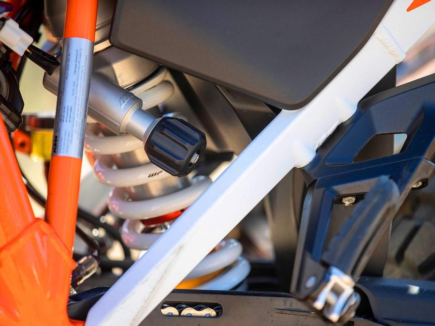 Герой ралли Dakar Куинн Коди был привлечён KTM для помощи с настройками подвесок WP Xplor. 48-я вилка имеет раздельные контуры сглаживания: одно перо отвечает за сжатие, второе - за отбой. Оба пера оснащены внешним регулятором преднатяга пружин с тремя положениями. Задняя подвеска с амортизатором PDS тоже снабжена внешним регулятором преднатяга, а также регулировками сжатия и отбоя.